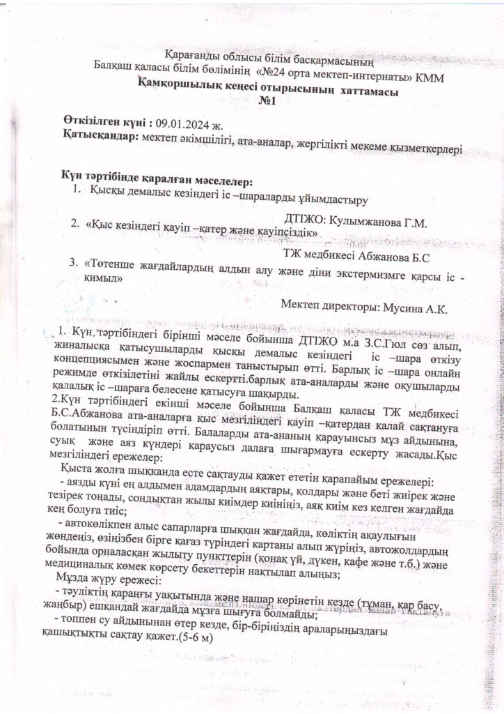Қамқоршылық кеңесі №1 отырысының хаттамасы