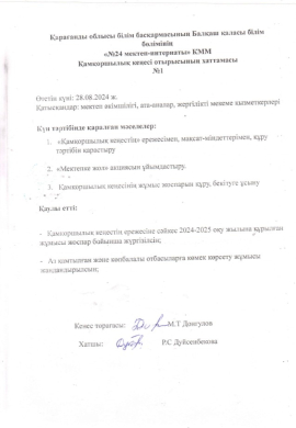 Қамқоршылық кеңесі отырысының хаттамасының көшірмесі №1