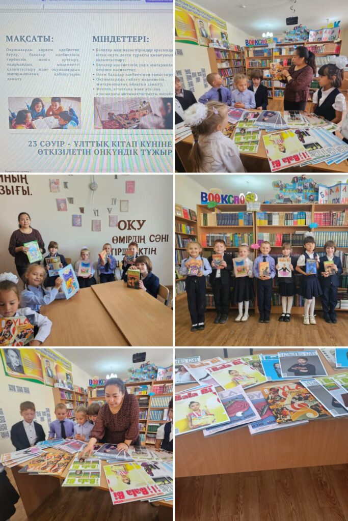 Қарағанды облысы білім басқармасының Балқаш қаласы білім бөлімінің “№ 24 мектеп-интернаты” КММ- інде Ұлттық кітап күні қарсаңында 14 сәуір күні “Адал азамат” біртұтас тәрбие бағдарламасының “Балалар кітапханасы” жобасы аясында «Менің сүйікті журналым» 1-4 сынып оқушыларына қызықты журналдармен таныстыру бойынша кітапханаға экскурсия ұйымдастырылды. Мақсаты: Оқушыларды көркем әдебиетке баулу, балалар әдебиетінің тәрбиелік мәнін арттыру, оқырмандық мәдениетті қалыптастыру және оқушылардың шығармашылық қабілеттерін дамыту.